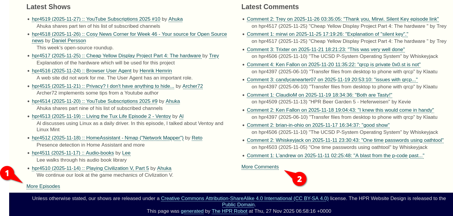 Have link to All shows under Latest Shows, and All comments under Latest Comments #316
