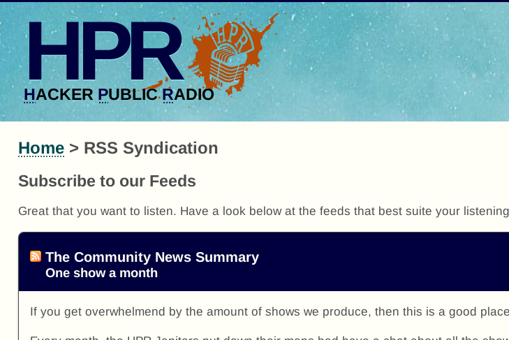 In the screenshot above the HPR is also redundant if we have Hacker Public Radio - so that should also go.