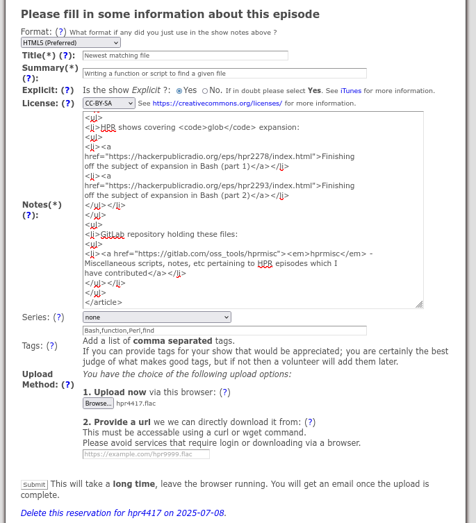 The part of the form requesting details of the show being uploaded has some layout problems: