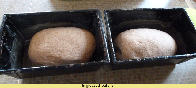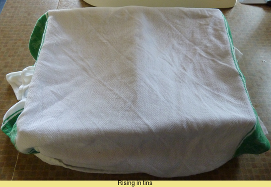 I pressed the dough into the tins this time, but it shouldn't really be necessary and the end result will be better if you don't. Leave covered to rise as before.