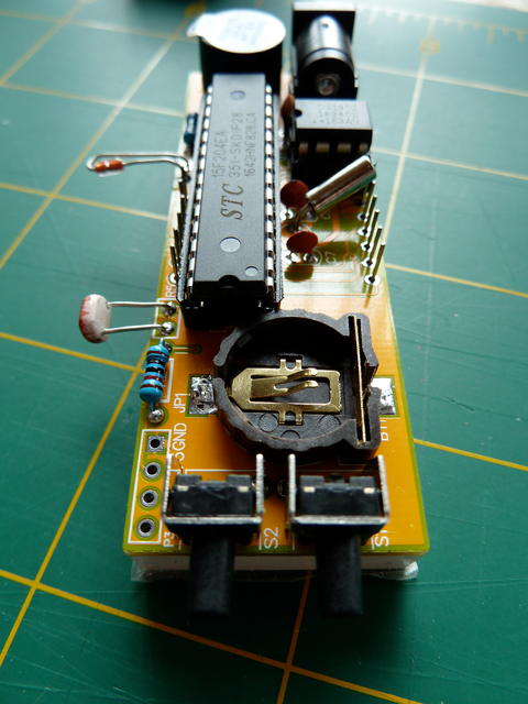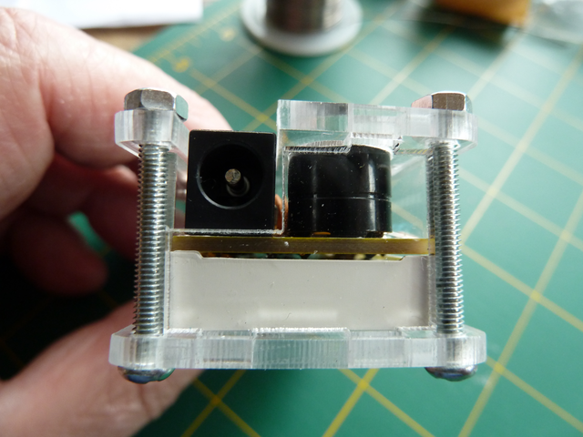 Getting the LDR (light dependent resistor) and the thermistor (temperature sensor) positioned so they protrude though the case needs care. In case you wondered I washed before removing the seal. ☺