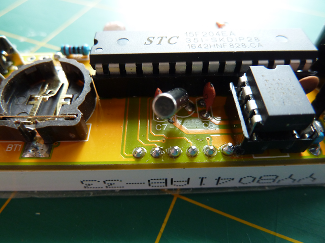 The fitting of the display needed care since the pins were a bit splayed or bent and needed straightening. Orientation is important of course, as is clearance of components on the board (like the crystal, which could short out pins).