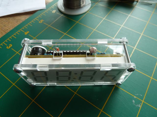 The clock was a tight fit in the case, which is why it was very important to ensure that everything was properly aligned on the PCB and the clearance between PCB and display chip were as small as possible.